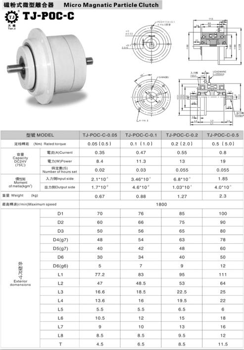 小型磁粉離合器即是微型磁粉離合器,TJ-POC-C型的扭矩比較小,常用的扭矩規(guī)格有0.5Nm、1Nm、2Nm和5Nm共4個規(guī)格,適合與張力控制器匹配使用。散熱方式為自然冷卻式,5r/min起供應(yīng),最高轉(zhuǎn)速1800r/min。