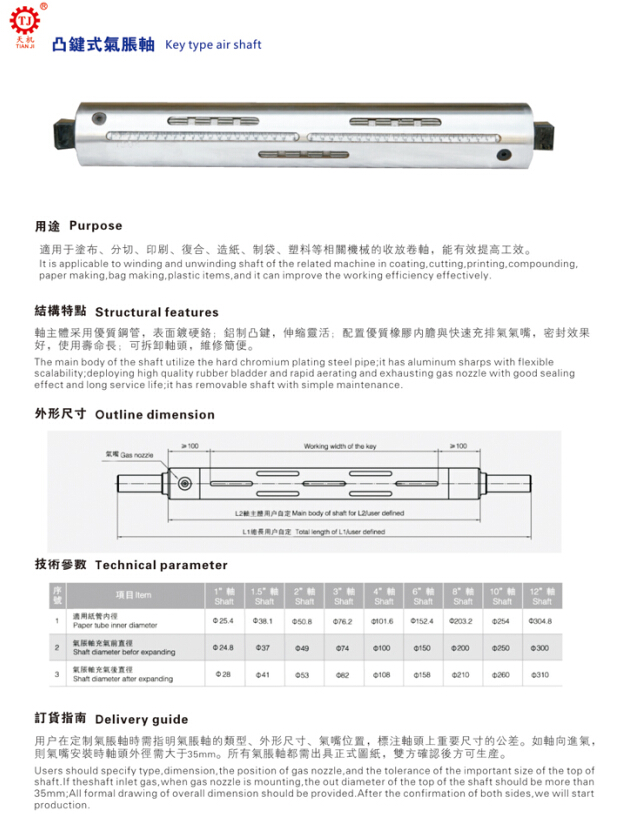 鍵條式氣漲軸型號(hào)選型,鍵條式氣漲軸規(guī)格參數(shù)