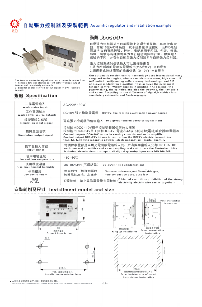 關(guān)于其接線情況參考產(chǎn)品使用說明書,請咨詢東莞天機傳動生產(chǎn)廠家供應(yīng)卷徑型半自動張力控制器,演算型半自動張力控制器,包括手動張力控制器、全自動張力控制器,十多年臺灣品牌制造廠家。